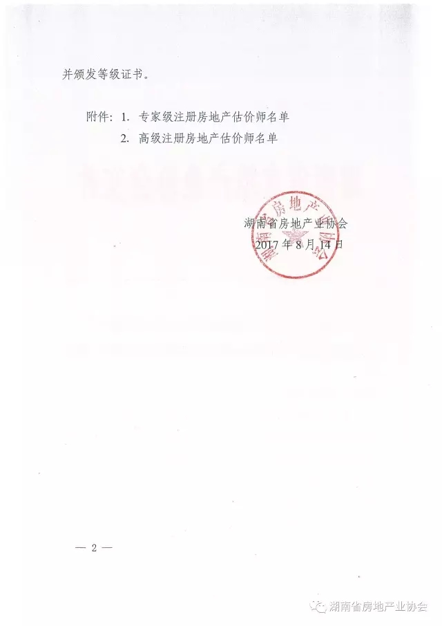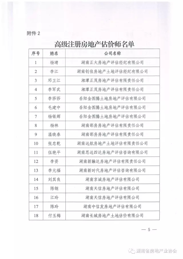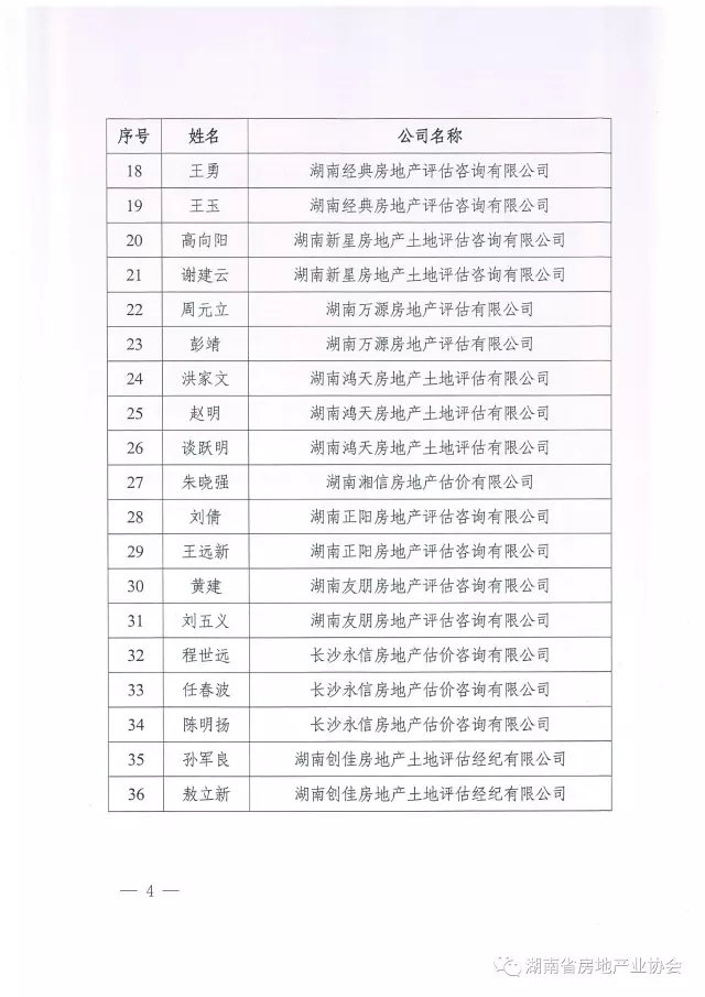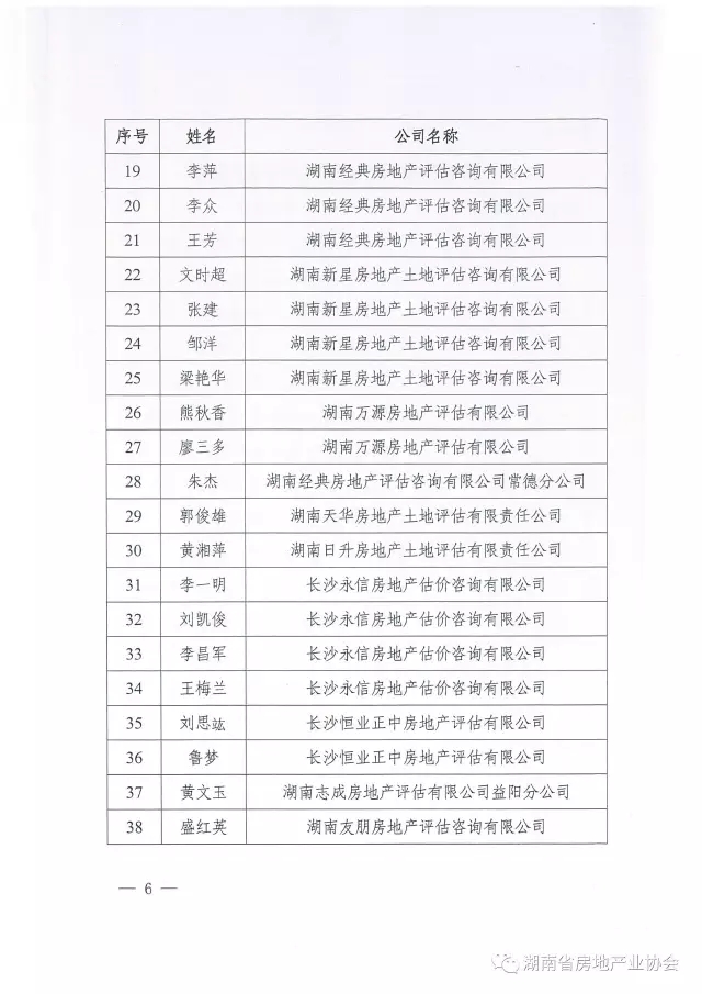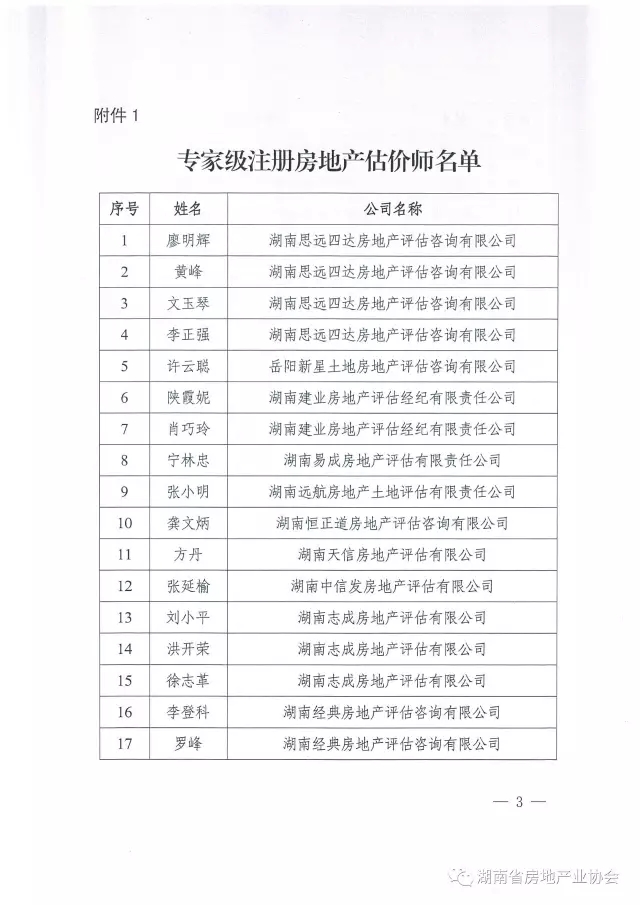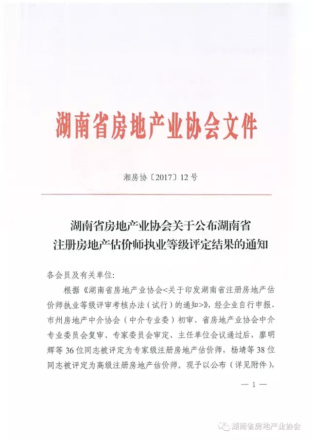 湖南省房地产业协会关于公布湖南省注册房地产估价师执业等级评定结果的通知